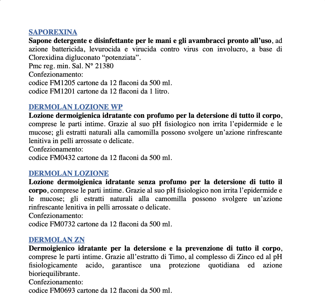ELENCO PRODOTTI MONDIAL SRL